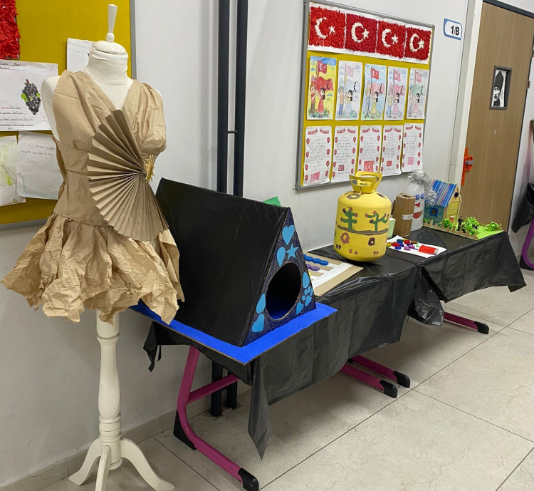 Bursa'nın Mudanya ilçesinde Şehit Tunahan Yavuz İlkokulu 2. sınıf öğrencileri, sıfır atık temalı düzenledikleri defile ve sergi ile çevre bilincine dikkati çekti.