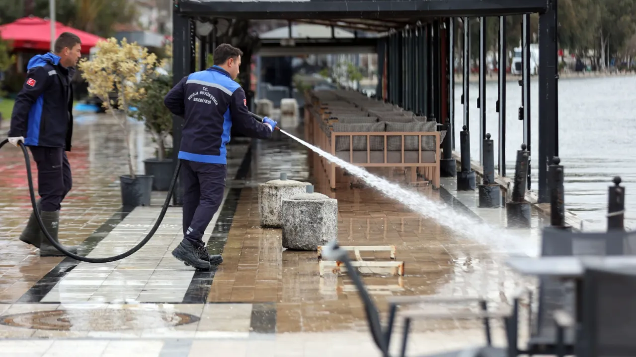 Muğla Büyükşehir Belediyesi, 27 Şubat'taki yoğun yağışların ardından taşan Köyceğiz Gölü'nün etkilediği cadde, sokak ve kordon boyunda temizlik çalışmalarını tamamladı. Başkan Aras, ekiplerin oluşan çamur, yosun ve birikintileri kaldırdığını açıkladı.