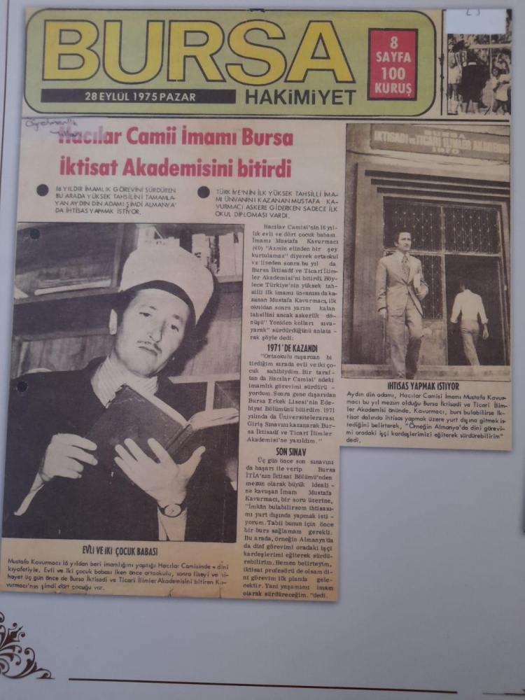 BURSA (İGFA) - Bursa İktisadi ve Ticari İlimler Akademisi İktisat Bölümü'nden 1975'te mezun olarak Türkiye'nin öncü üniversiteli Diyanet mensupları arasına adını yazdıran Mustafa Kavurmacı, dini hizmetlerini ilimle taçlandırdı. İmamlık görevini Heybeliada, İstanbul, Bozüyük ve Bursa'da sürdürdü.