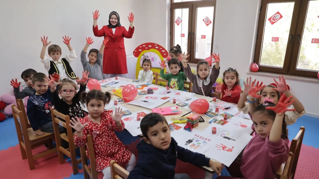 Çocuk oyun alanında çocuk gelişimci personeli ile birlikte 4-8 yaş arası çocuklara yönelik yapılan kutlama etkinliklerine 14 çocuk katılırken etkinlik 'Cumhuriyet Ruhunu Yaşatmak' mottosuyla gerçekleştirildi.