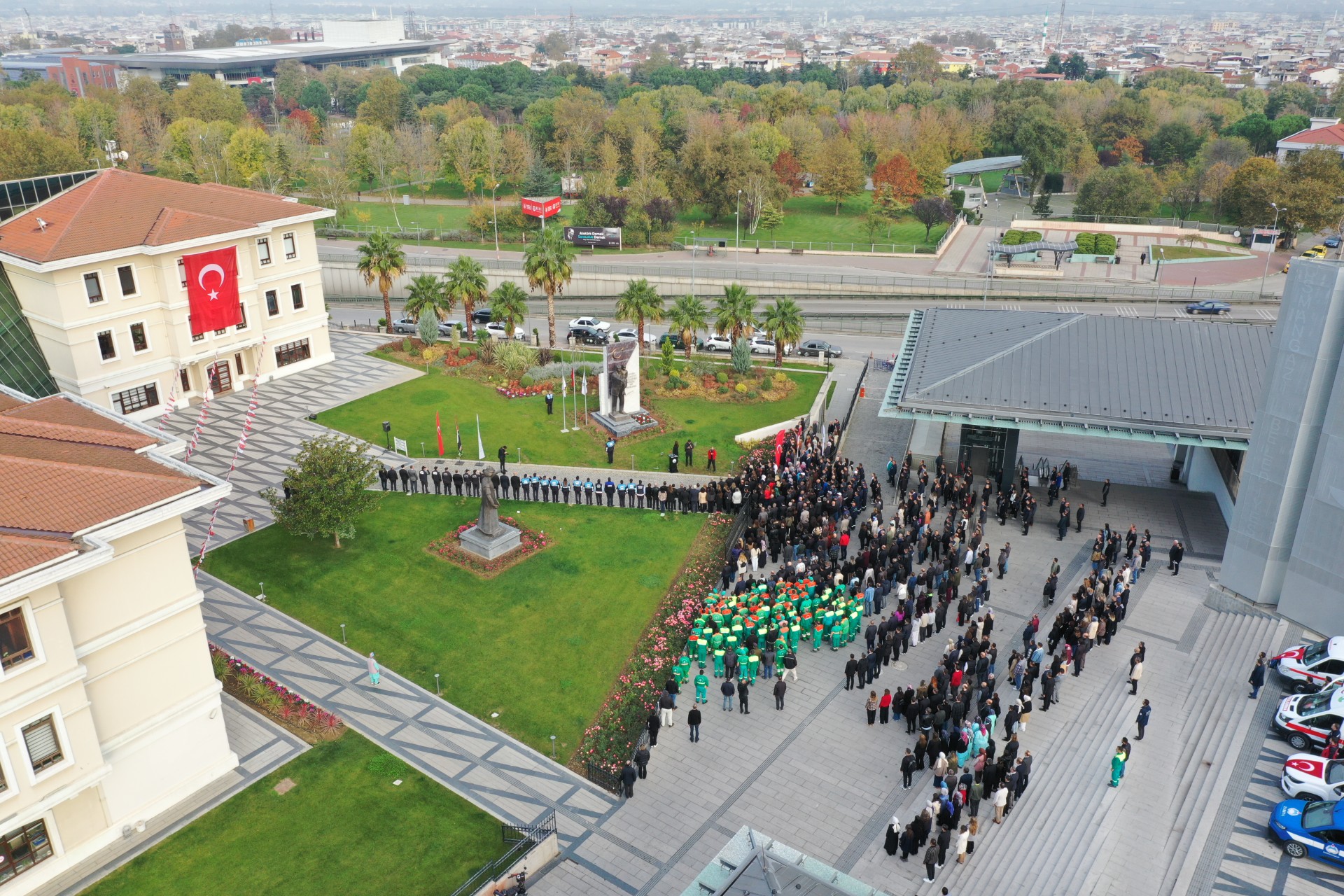 Anma töreni kapsamında Osmangazi Belediyesi hizmet binası, Türk bayraklarıyla donatıldı. Aynı zamanda Türk Bayrağı, Atatürk’e duyulan derin saygının simgesi olarak yarıya indirilirken, belediye çalışanları duygu dolu anlar yaşadı. Tören sonunda ise Atatürk defteri köşesinde katılımcılar, Atatürk’e olan sevgi, minnet ve özlemlerini dile getiren satırlar yazdı.