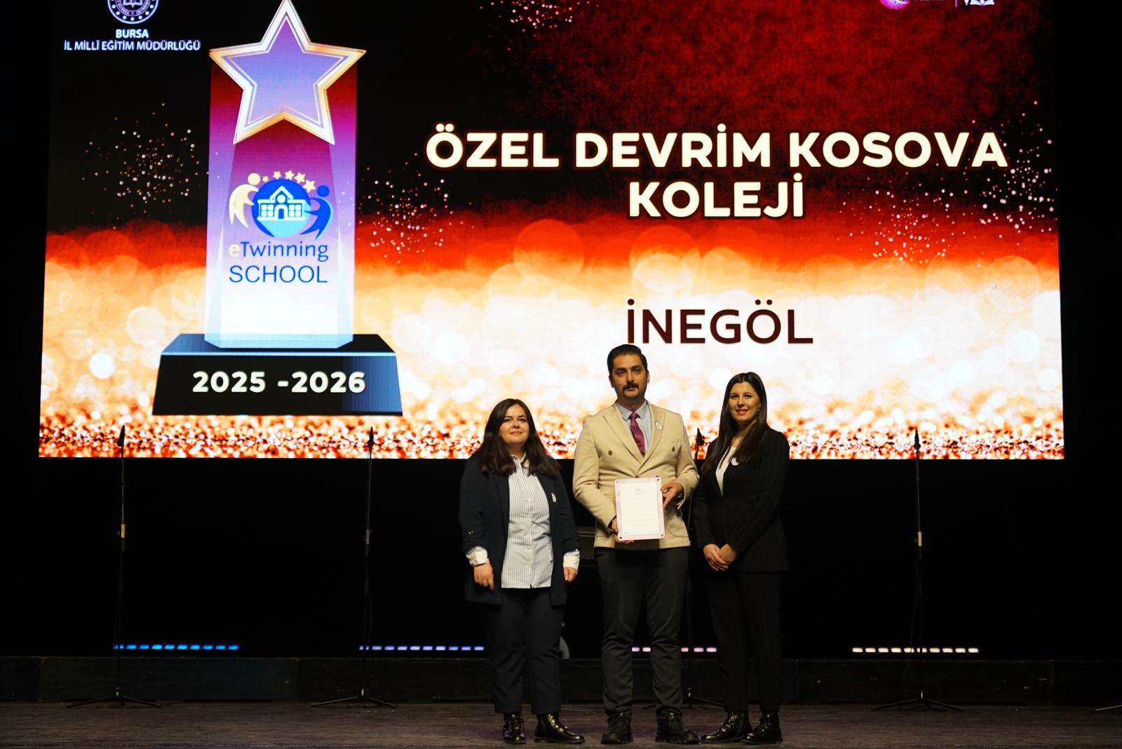 Bursa İl Millî Eğitim Müdürlüğü tarafından düzenlenen törende Özel Devrim Kosova Okulları, eğitimde kalite ve yenilikçiliğin önemli bir göstergesi olan eTwinning Okul Etiketi Ödülü’ne layık görüldü.