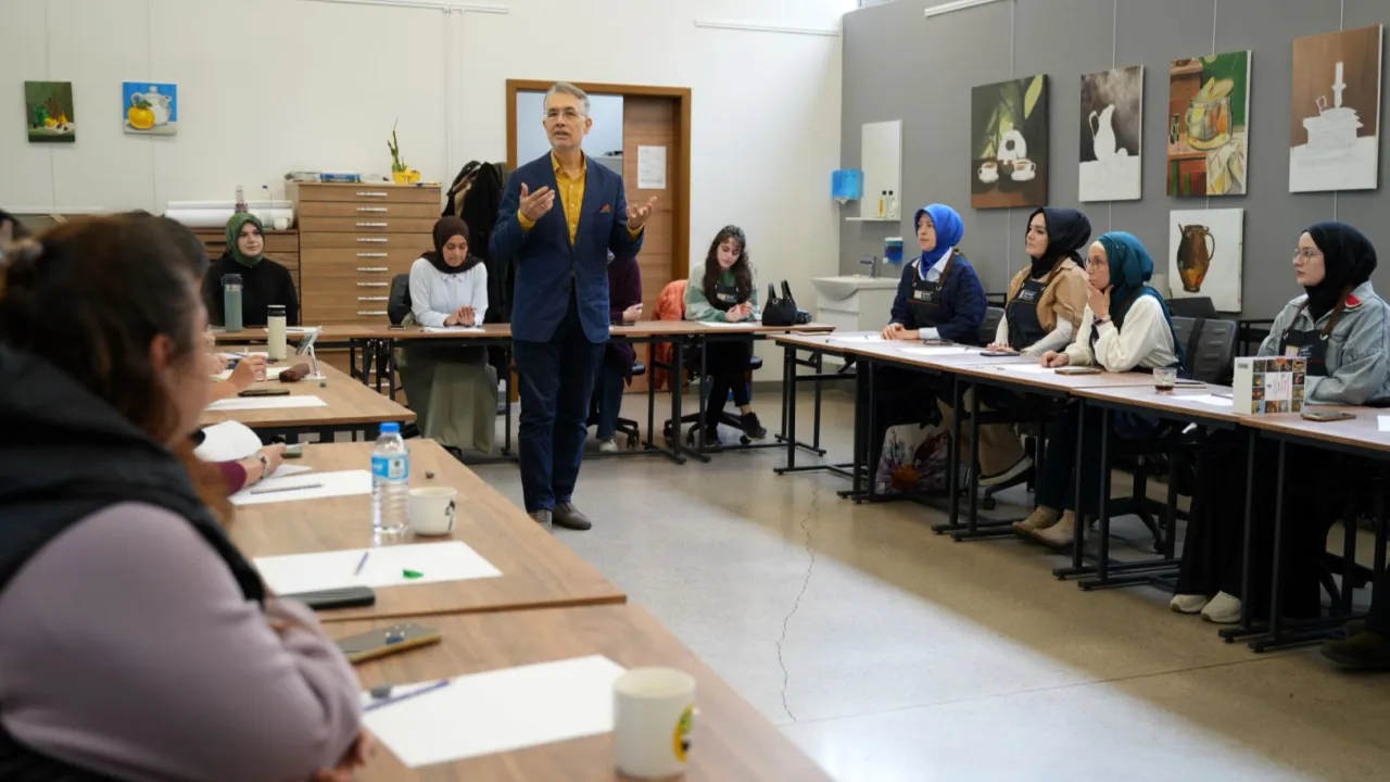 Eğitim sanatın insan ruhuna yönelik şifasını bir kez daha gözler önüne serdi. Sanatçı Cemal Toy, 'Renklerin Kalbi' söyleşinde ise resim teknikleri hakkında önemli bilgiler aktardı.