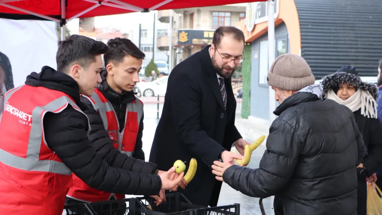 Saadet Partisi Konya İl Gençlik Kolları tarafından Muhacir Pazarı'nda kurulan 'Göz Hakkı Manavı' vatandaşlardan yoğun ilgi gördü. Dayanışma ve paylaşma kültürünü yaşatmak amacıyla hayata geçirilen etkinlikte, pazara gelen vatandaşlara ücretsiz meyve dağıtımı yapıldı.