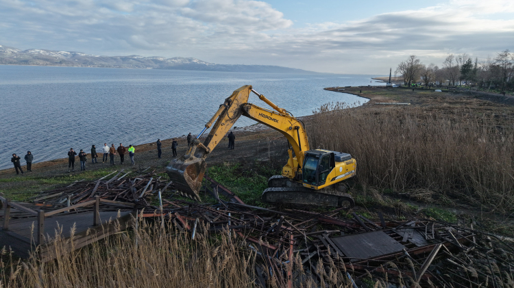 Sakarya Büyükşehir Belediyesi Su ve Kanalizasyon İdaresi Genel Müdürlüğü (SASKİ) ekipleri, 1 Ocak'ta tebligatın ulaştırıldığı göl kıyısındaki 89 kaçak yapı için verilen sürenin tamamlandığı 20 Ocak sabahında bölgedeki tüm işgalleri kaldırmak için iş makinalarını çalıştırdı.