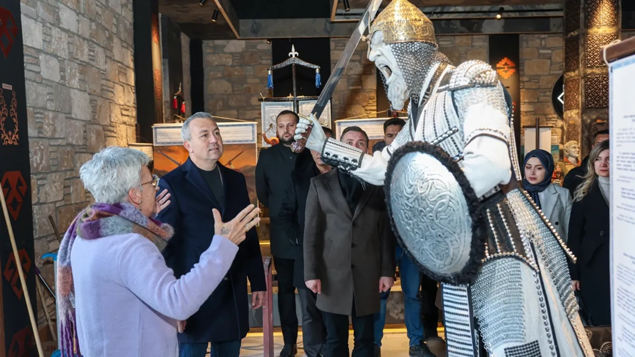 SİVAS (İGFA) - Selçuklu medeniyetinin önemli merkezlerinden biri olan Sivas'ta yapımı tamamlanan müzeyi ziyaret eden Belediye Başkanı Dr. Adem Uzun, eserleri yakından inceleyerek Geleneksel Anadolu Kültür ve Sanat Atölyeleri Akademi Başkanı Doç. Dr. Işın Fırat'tan bilgi aldı.