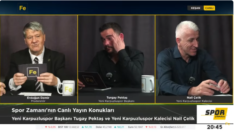 Fe TV ekranlarında Erdoğan Demir'in hazırlayıp sunduğu Spor Zamanı programının konukları, Edirne 1. Amatör Lig B Grubu ekiplerinden Yenikarpuzluspor Kulüp Başkanı Turgay Pektaş ve takımın tecrübeli kalecisi Nail Çelik oldu. Programda kulübün hedefleri, takımın mevcut durumu, altyapı çalışmaları ve bölge futboluna dair değerlendirmeler ele alındı.