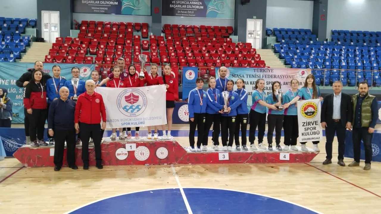 TRABZON (İGFA) - Trabzon Büyükşehir Belediyesi Kadın Masa Tenisi Takımı, 10-12 Nisan 2026 tarihleri arasında Düzce'de düzenlenen Türkiye Masa Tenisi Federasyonu NAVEK 2. Lig play-off müsabakalarında şampiyon oldu.