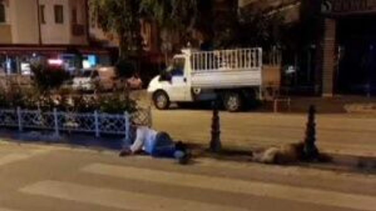 CADDE ÜZERİNDE YATAN VATANDAŞI GÖRENLER ŞAŞTI KALDI