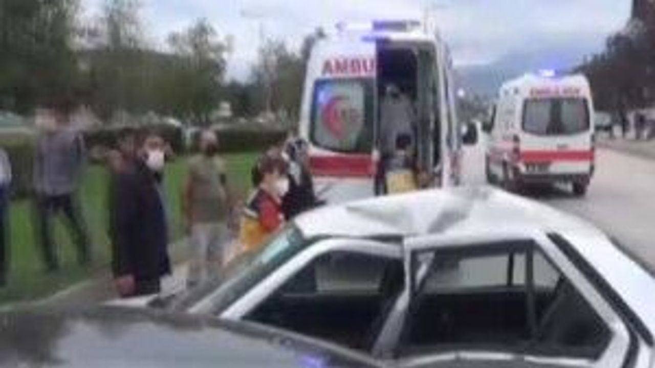 İnegöl Alanyurt yolunda meydana gelen trafik kazasında iki otomobil çarpıştı kazada 5 kişi yaralandı.Kaza anı ise saniye saniye bir işyerinin güvenlik kamerasına böyle yansıdı.
