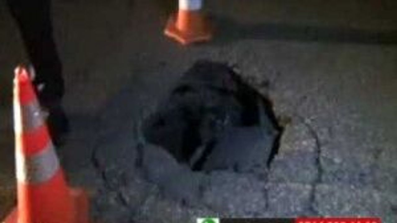 trafiğin yoğun olduğu cadde üzerinde göçük oluştu. Bir vatandaş aracıyla göçüğe düşmekten son anda kurtulurken, belediye ekipleri yolda çalışma...