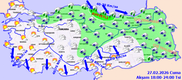 ANKARA (İGFA) - Meteoroloji Genel Müdürlüğü, 27 Şubat Cuma gününe ilişkin hava tahmin raporunu yayımladı.