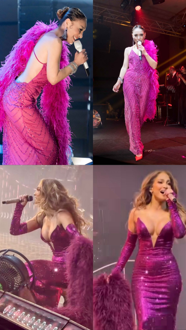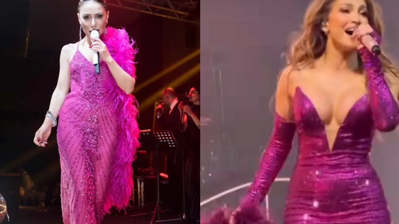 Aynı renk sahne kostümü tercih eden Ziynet Sali ve Jennifer Lopez, üstelik aynı peluş aksesuarı kullanınca ortaya tam anlamıyla yılbaşı gecesine yakışır bir 'pişti' çıktı.